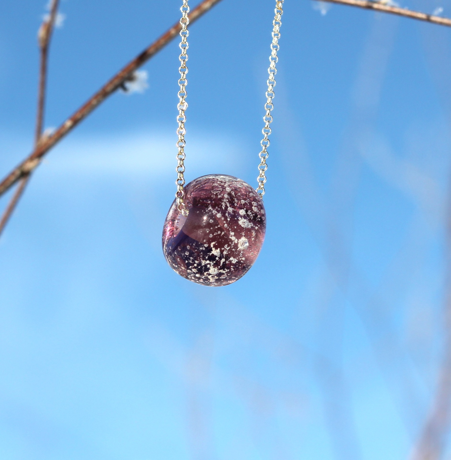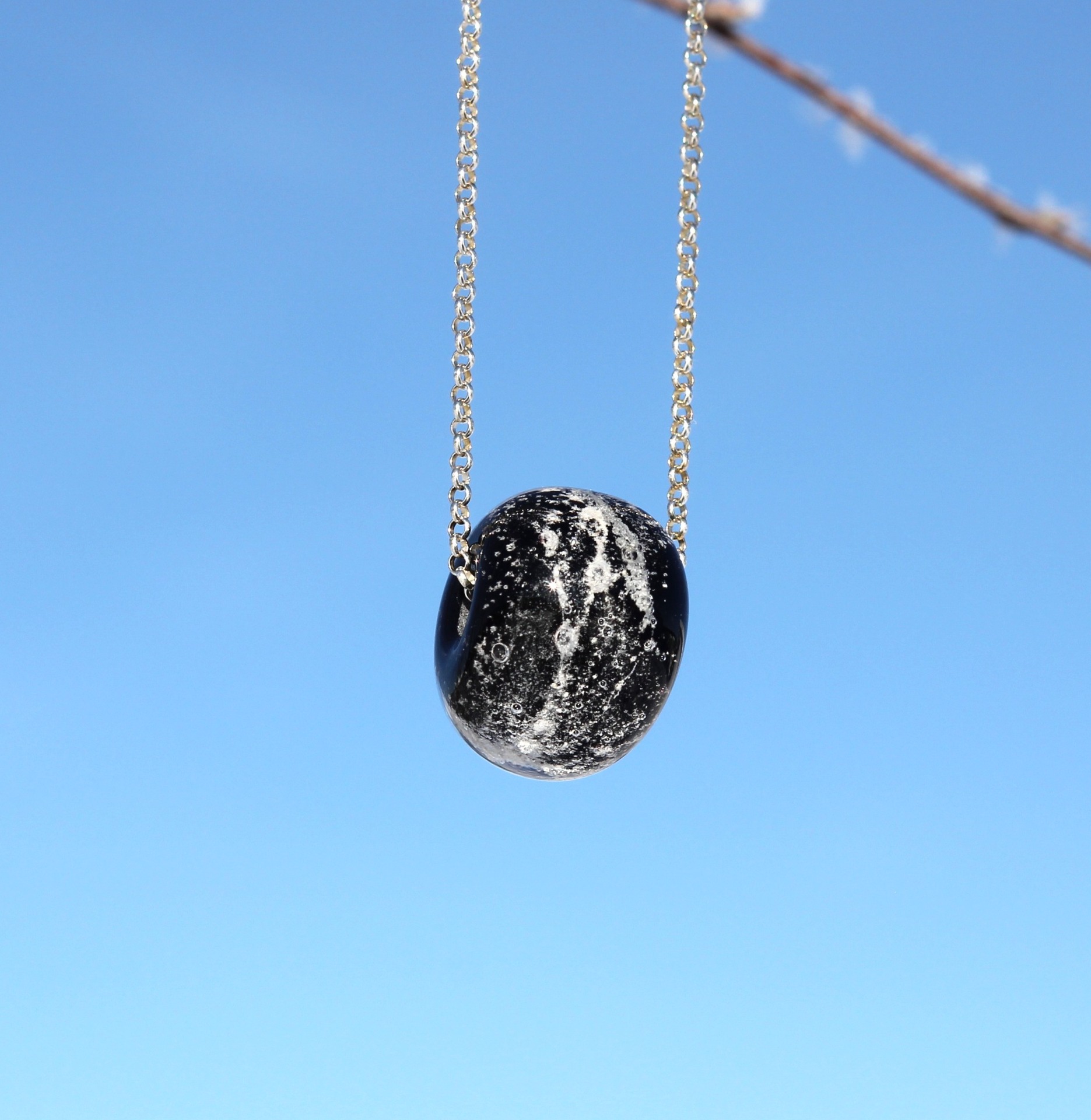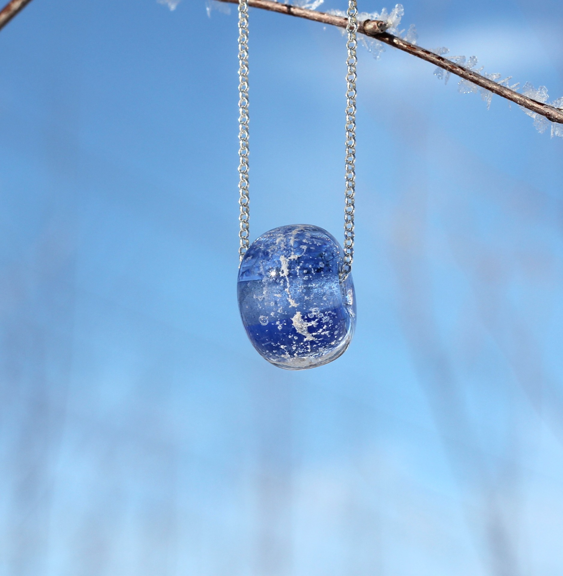 Lasihelmi valmistetaan lampputekniikalla tilaustyönä. Helmen sisällä on ripaus rakkaan lemmikkisi tuhkaa. Muoto ja koko voivat hieman vaihdella, koska jokainen helmi valmistetaan käsityönä. Helmen sisälle muodostuu ilmakuplia, kun sinne lisätään tuhkaa. Helmen halkaisija on noin 15-20mm.